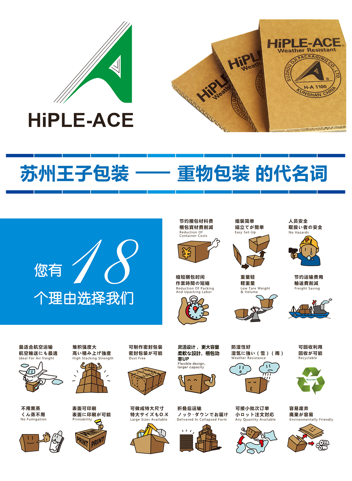 HiPLE-ACE®重量轻,还对构造进行高度精简设计。因此,少数员工就能进行组装、开箱捆箱,可以大幅度缩短工作时间。从而削减人工费、降低单位劳动成本。